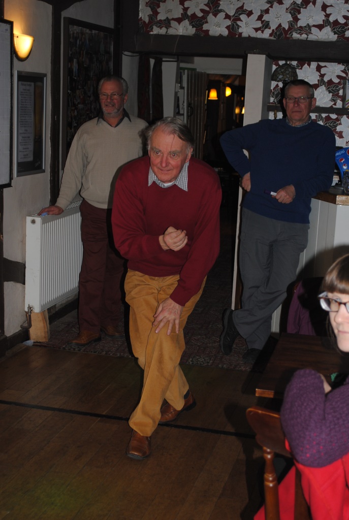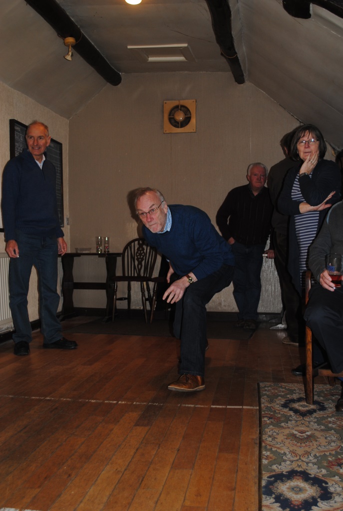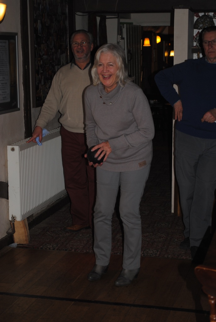 A full house at the Butchers Arms assembled for the Annual Skittles Night for the 3 rounds with 'The Boys' vs 'The Girls' and yet again The Boys triumphed. The Man highest score (and overall score) with 26 was Graham Smith, however the girls needed a 'Play Off' between Emilia, Stephanie & Julia each with 22 points, eventually Emilia managed not to miss the single skittle to win the prize. A good hot supper of Steak & Ale Pie and/or Meat Lasagne was enjoyed before the final game of 'Killer', which came down to a final 2 with Lech holding his nerve to know me into second place. There was a clear winner for the Wooden Spoon, which was taken home by David Harrison. Well done to all for an enjoyable evening and thanks to The Butchers Arms for their warm welcome.