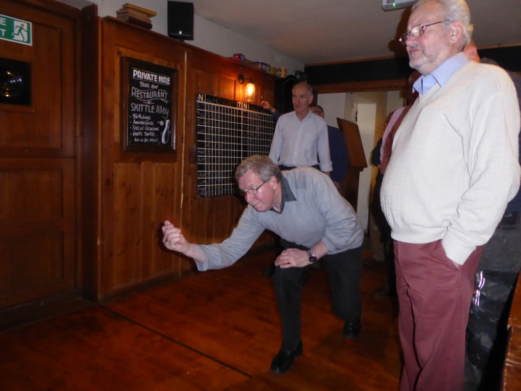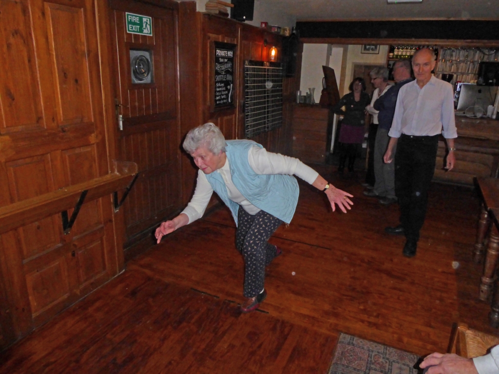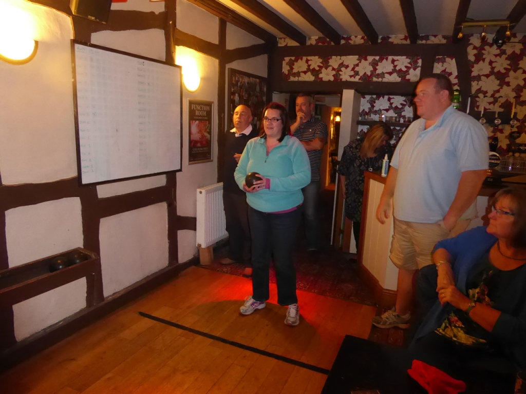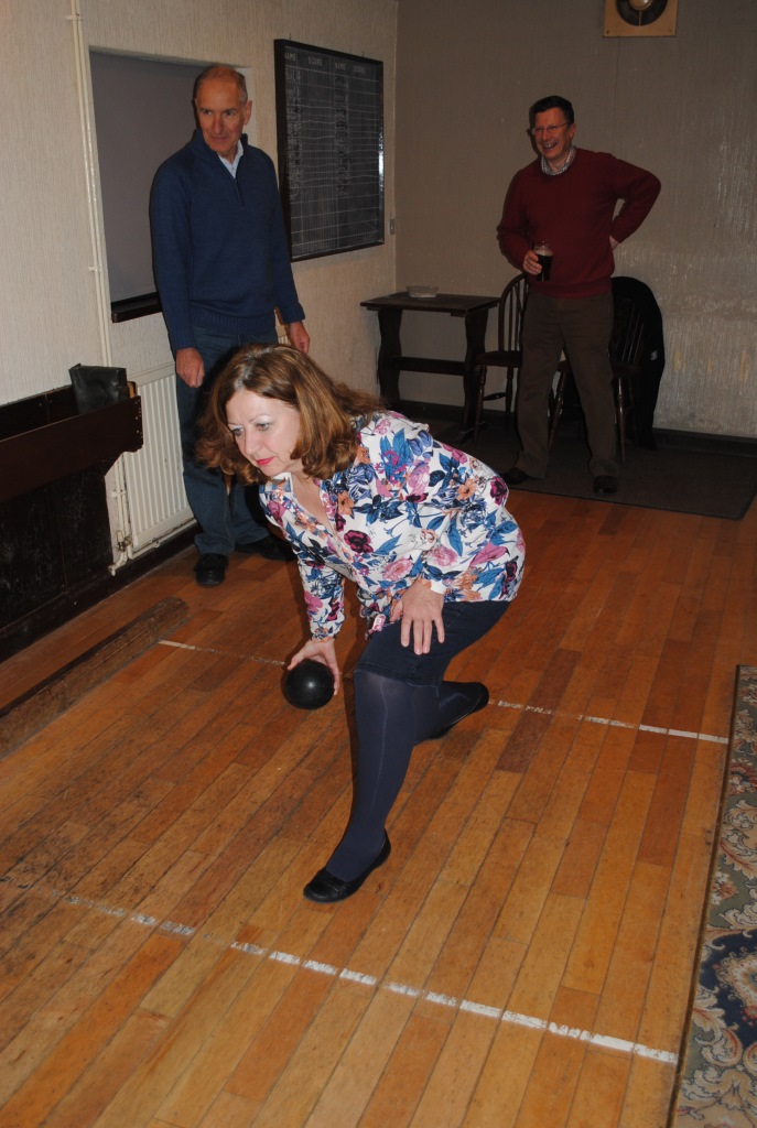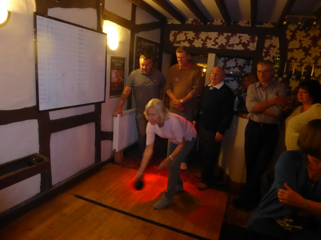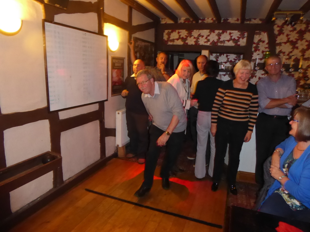 A full house for our Skittles Evening where 34 of us enjoyed a long evening of skittling at the Binton Social Club. As ever the boys triumphed over the girls with a combined score of 221 against 212, come ladies you must do better next time!!! There were clear winners for the prizes with Roger Phipp (21 points) and David Rayner (18 points) for the men's and Pam Zak (16 points), however we needed a playoff between Caroline, Julia Cleobury & Alison Smith for the runner up for the Ladies prizes. It was Julia who held her nerve to take the honours. No one wanted to take the wooden spoon home with 5 players on 9 points, so it was decided that the wooden spoon would be awarded to the first player to leave the game of 'Killer', I was obviously not concentrating and the spoon is proudly displayed in my Study!! Caroline Phipp finally won a hard fought game of Killer to join husband Roger in taking a prize home.