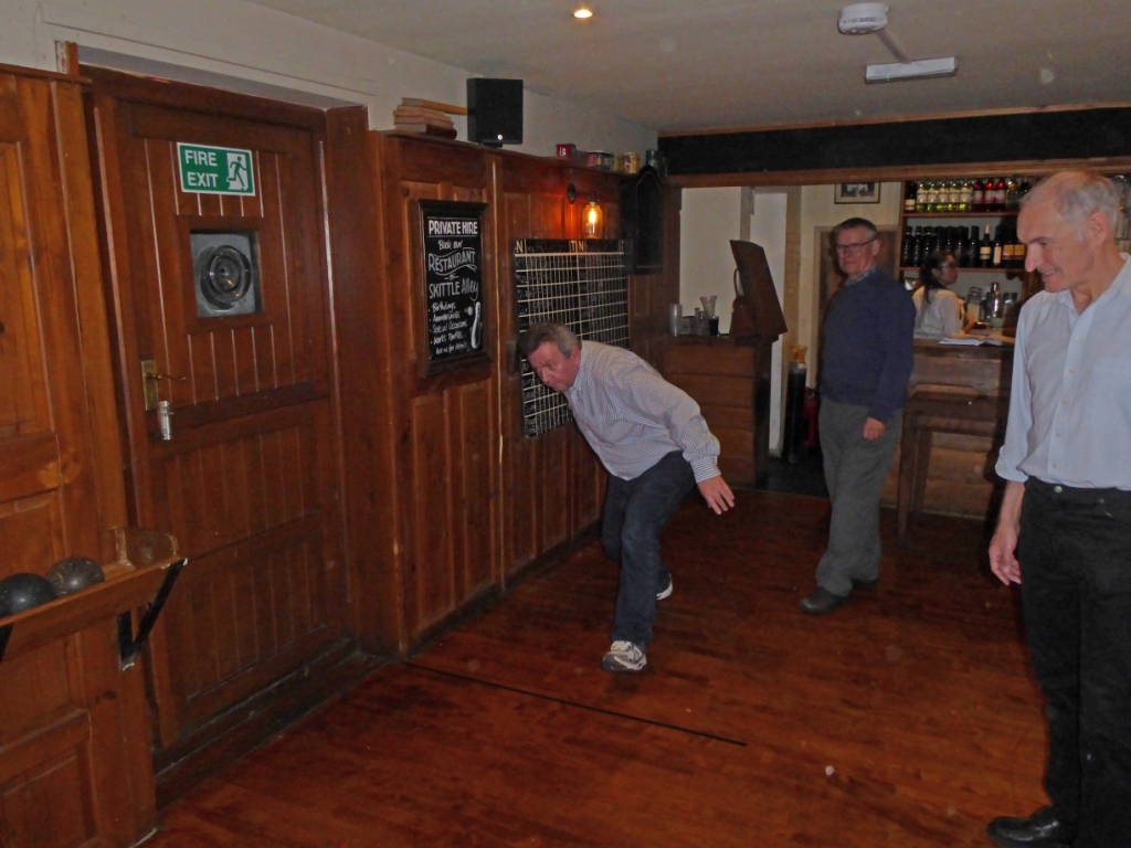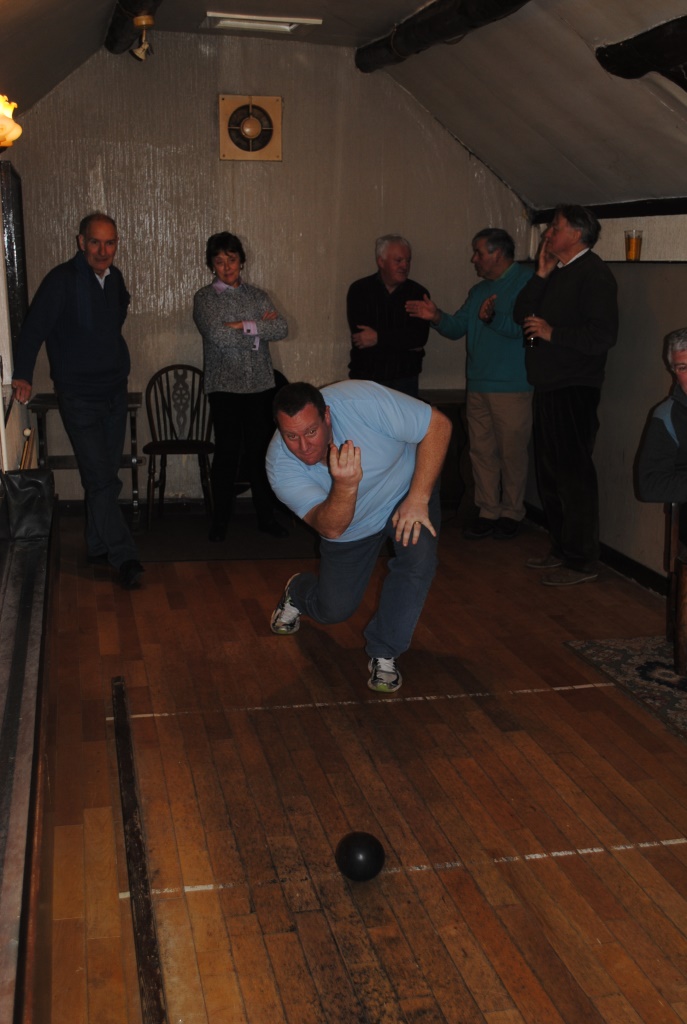 Nigel organised us a great evening last night at the Butchers Arms in Mickelton. 31 of us did 'battle' down the skittle ally and despite having 1 less player the girls beat the boys 235 against 206 points. The highest score over the 2 rounds was 21, well done Tony Barr. As usual we finished with a game of killer and yet again Caroline just managed to hold her nerve till the end as Mike Green missed with only 2 skittles left standing. Well done Caroline. Many thanks to Nigel. Here are some photos of the evening: