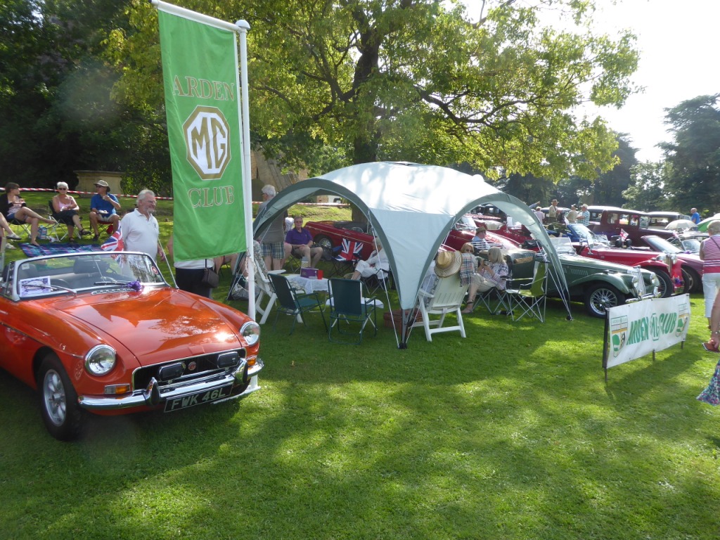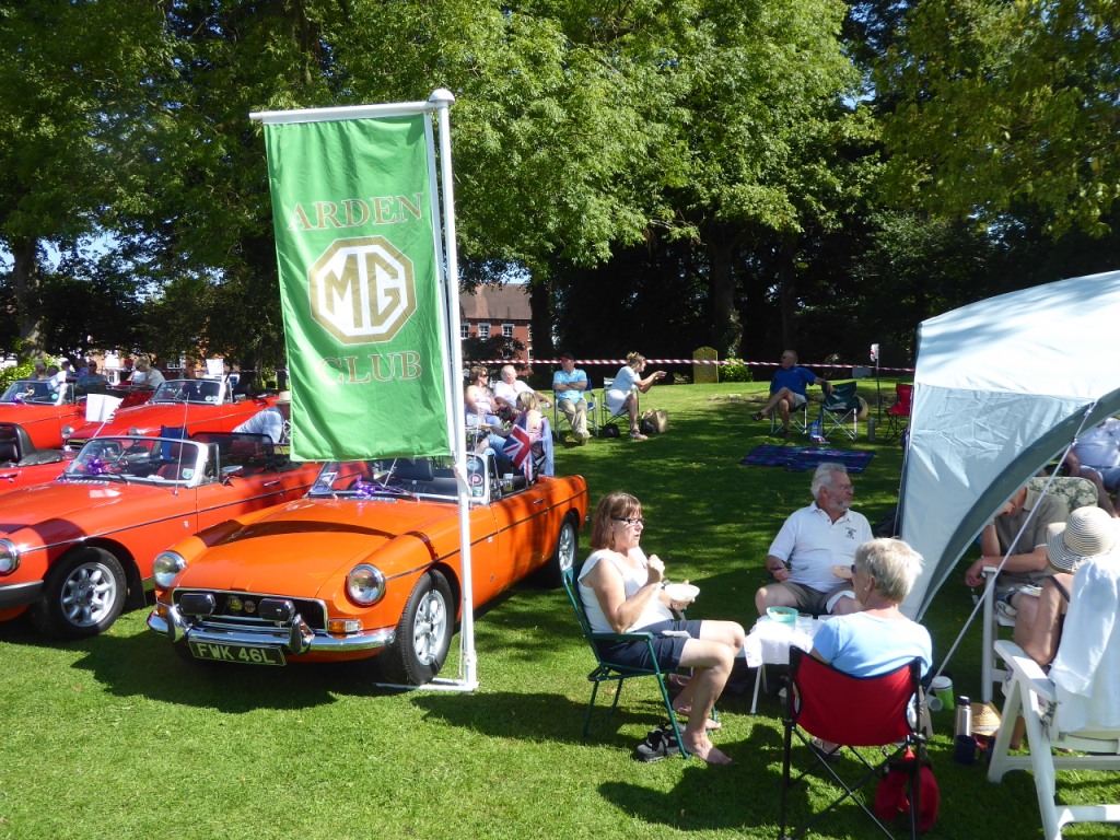 A convoy of MGs departed from the Golden Cross at 9pm to meet up with David & Diane Rayner who had saved 'our' space with their 'New MG' underneath the club flag.