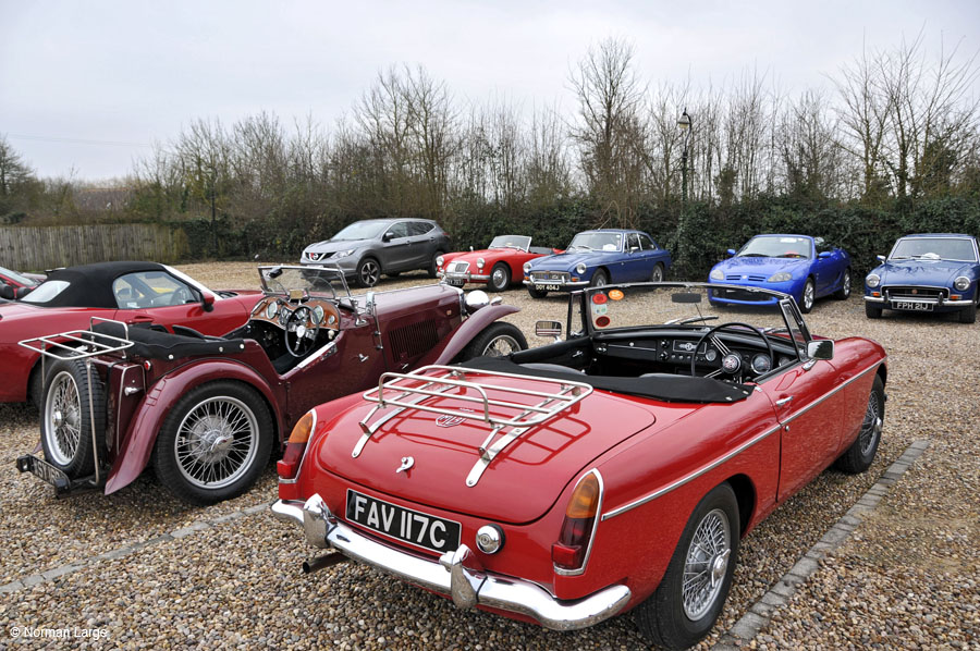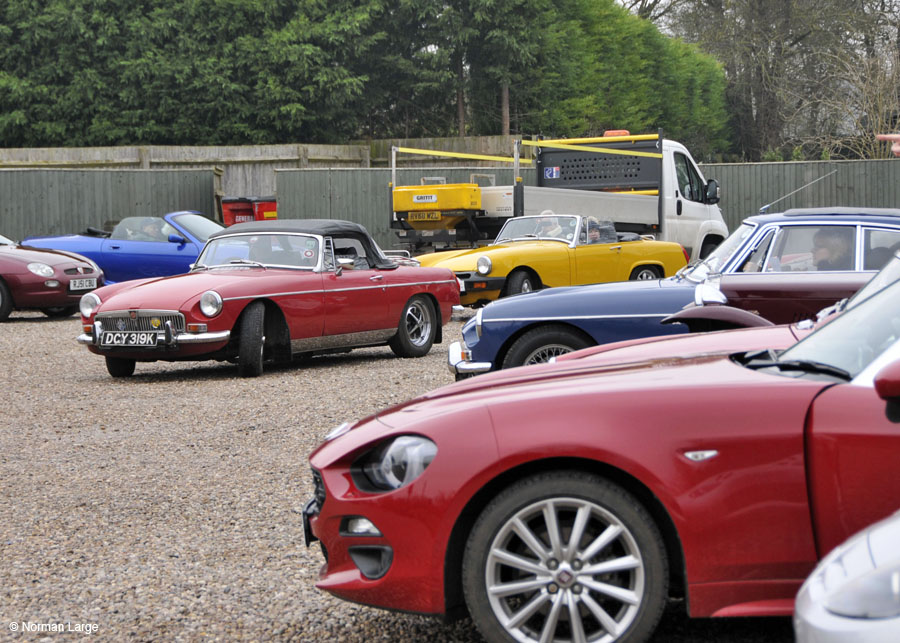 This got the New Year off to a great start, this year we started and finished at the Golden Cross and a few folks took advantage of the bacon rolls before the run. The route was set out using only gritted roads but the weather was warm enough that we didn't need to, however there were some interesting roads for us to travel along. It would appear that one of the junctions changed from when we did the recce as it appeared different to the instruction but it was so close to the Cross I don't think anyone got lost!! It was great to see that two thirds of you took the day seriously and used your MG, my 'B' was indisposed but we did bring the 'New MG 124 Spider', maybe this is what the MGB should have become. There were 33 of sitting down to lunch and the staff at the Cross did their usual great job looking after us. Here are some photos of the day, many thanks to Norman for bringing his camera, his photos can be viewed and downloaded from: